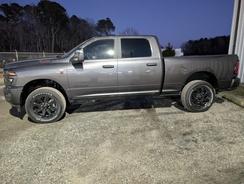 ENGINE: 6.7L I6 CUMMINS HO TURBO DIESEL Selective Catalytic Reduction (Urea), Dual 730 Amp Maintenance Free Batteries, GVWR: 11,800 lb, Cummins Turbo Diesel Badge, Heavy Duty Engine Cooling, Current Generation Engine Controller, Diesel Exhaust Brake, Supplemental Heater, 3.42 Axle Ratio, Front Bumper Sight Shields, Capless Fuel Fill w/o Discriminator, BIG HORN LEVEL 1 PLUS EQUIPMENT GROUP For Details Visit DriveUconnect.com, For More Info, Call 800-643-2112, Emergency Vehicle Alert System (EVAS), 12 Touchscreen Display, Glove Box Lamp, Auto Power-Folding Mirrors, Footwell Courtesy Lamp, MOPAR Deployable Bed Step, Alexa Built-In, Forward & Reverse Utility Lights, Locking Lower Glove Box, Remote Start System, 9 Alpine Speakers w/Subwoofer, Disassociated Touchscreen Display, Dual Glove Boxes, 2nd Row In Floor Storage Bins, Rear View Auto Dim Mirror, Rear Dome w/On/Off Switch Lamp, LED Bed Lighting, GPS Navigation, SiriusXM w/360L, Connected Travel & Traffic Services, Foam Bottle Insert (Door Trim Panel), Big Horn IP Badge, Off-Road Information Pages, Trailer Tow Pages, HD Radio, Radio: Uconnect 5 Nav w/12.0 Display, Power Heated Fold, NIGHT EDITION Firestone Brand Tires, Gloss Black Nostrils/Molded in Color Black Grille, Tires: LT285/60R20E OWL On/Off Road, Black Exterior Truck Badging, Wheels: 20 x 8.0 Black Painted Aluminum, Body Color Grille Surround, Black Interior Accents, Black Wheel Center Hub, Painted Front Bumper, Painted Rear Bumper, HEATED SEATS & WHEEL GROUP Heated Steering Wheel, Heated Front Seats, TRANSMISSION: 8-SPEED TORQUEFLITE HD AUTOMATIC 12.0 Single Rear Wheel Axle, BLACK, CLOTH 40/20/40 PREMIUM BENCH SEAT Rear 60/40 Folding Seat, Front Center Seat Cushion Storage, Power Adjust 8-Way Driver Seat, Folding Flat Load Floor Storage, Front Seat Back Map Pockets, Power 2-Way Driver Lumbar Adjust.