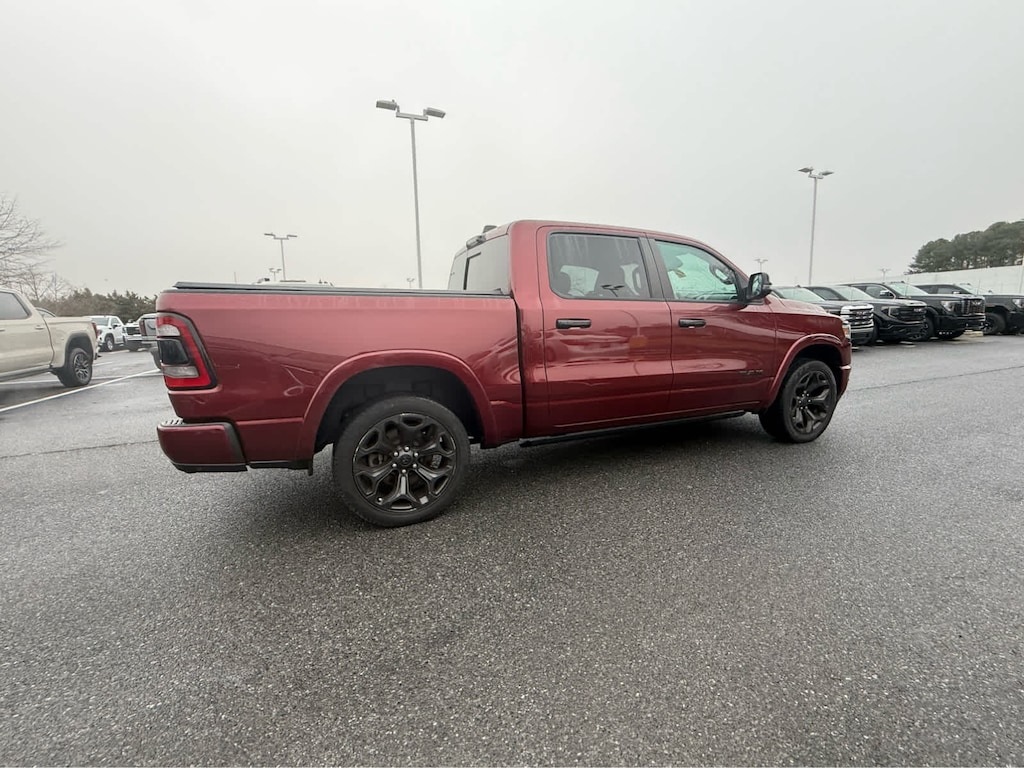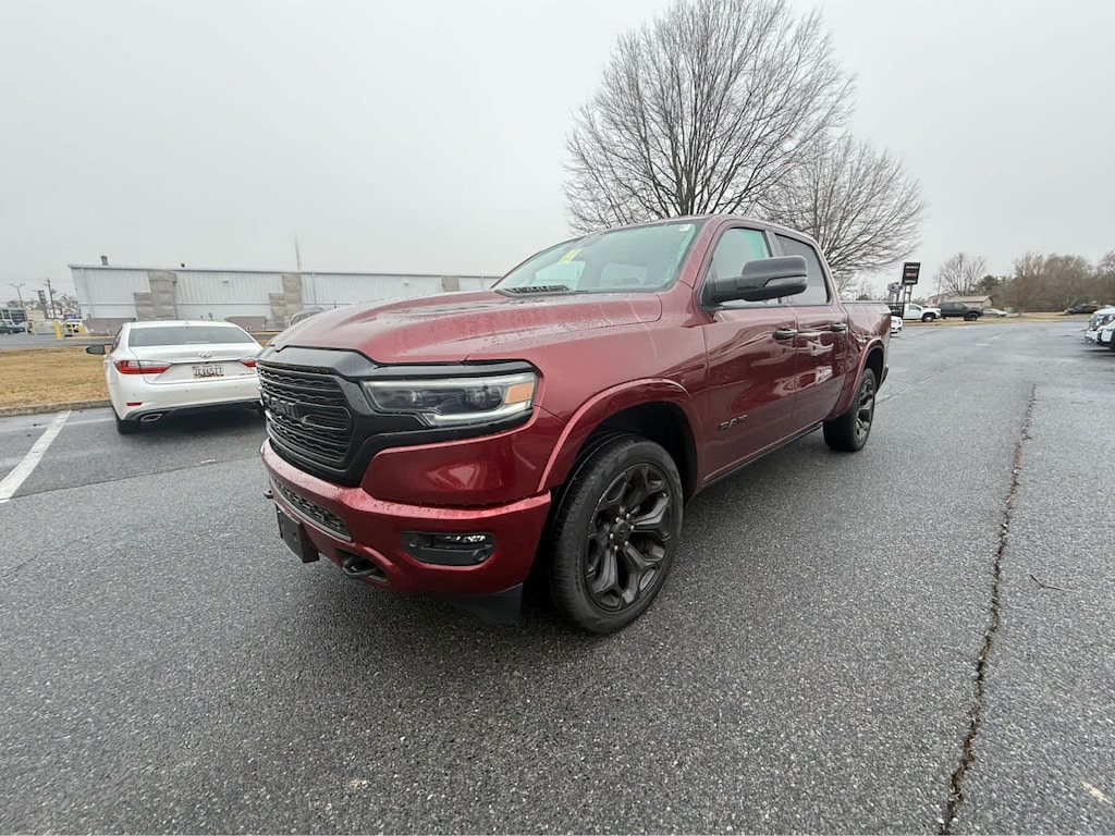 ======: Auto Check One Owner! FUEL EFFICIENT 22 MPG Hwy/17 MPG City! Heated/Cooled Leather Seats, Sunroof, NAV, Heated Rear Seat, Bed Liner, Tow Hitch, ENGINE: 5.7L V8 HEMI MDS VVT ETORQUE, ANTI-SPIN DIFFERENTIAL REAR AXLE, TRANSMISSION: 8-SPEED AUTOMATIC (8HP7. ======SERVICE COMPLETED: Service Work completed on this Ram 1500 included: Complete Multi-Point Inspection, Oil & Filter Change by a Factory Trained Technician, Battery Voltage Test, Tires Inspected, Brake Inspection, Emissions System Check, Professional Detailed Inside and Out, Function Test all Lights, Check the Complete Exhaust System, Cooling System Inspection, Transmission Fluid Inspection, Differential Fluid Inspection, Function Test all Options & Accessories. ======KEY FEATURES INCLUDE: Leather Seats, Navigation, Heated Driver Seat, Heated Rear Seat, Cooled Driver Seat. Ram Limited with Delmonico Red Pearlcoat exterior and Black interior features a 8 Cylinder Engine with 395 HP at 5600 RPM*. ======OPTION PACKAGES: Adaptive Cruise Control w/Stop & Go, Surround View Camera System, Parallel & Perp Park Assist w/Stop, LED CHMSL Lamp, ParkSense Front/Rear Park Assist w/Stop, Wireless Charging Pad, Pick-Up Box Lighting, Pedestrian Emergency Braking, MOPAR Spray In Bedliner, Power Running Boards, Head Up Display, Tailgate Ajar Warning Lamp, Digital Rearview Mirror, Lane Keep Assist, Wheels: 22" x 9" Black Aluminum, Tires: 285/45R22XL BSW All Season, Tri-Fold Tonneau Cover, Black Headlamp Bezels, Accent Color Door Handles, Body Color Front Bumper, Body Color Rear Bumper w/Step Pads, RAM Grille Badge - Black, Black Painted Exterior Mirrors Caps, Accent Color Premium Power Mirrors, Sport Performance Hood, harman/kardon 19 Speaker Premium Sound, Black Exterior Truck Badging, Black Day Light Opening Moldings, Tow Hooks, Dual Exhaust w/Black Tips, Black Grille Surround Texture 7 Black, LED Dome/Reading Lamp, Dome Dual LED Reading Lamp, (STD), Delete Alternator, 18" Aluminum Spare Wheel (STD). ======A GREAT TIME TO BUY: This 1500 is priced $6,300 below J.D. Power Retail. ======OUR OFFERINGS: Our huge new and pre-owned inventory is ready for immediate delivery. Your short drive to Salisbury MD insures that you will have many more cars to choose from than Berlin, Preston, and Rehoboth! Our Service and Parts departments are well known for the fantastic service and repair expertise our large volume creates. Pricing analysis performed on 3/7/2026. Horsepower calculations based on trim engine configuration. Fuel economy calculations based on original manufacturer data for trim engine configuration. Please confirm the accuracy of the included equipment by calling us prior to purchase.